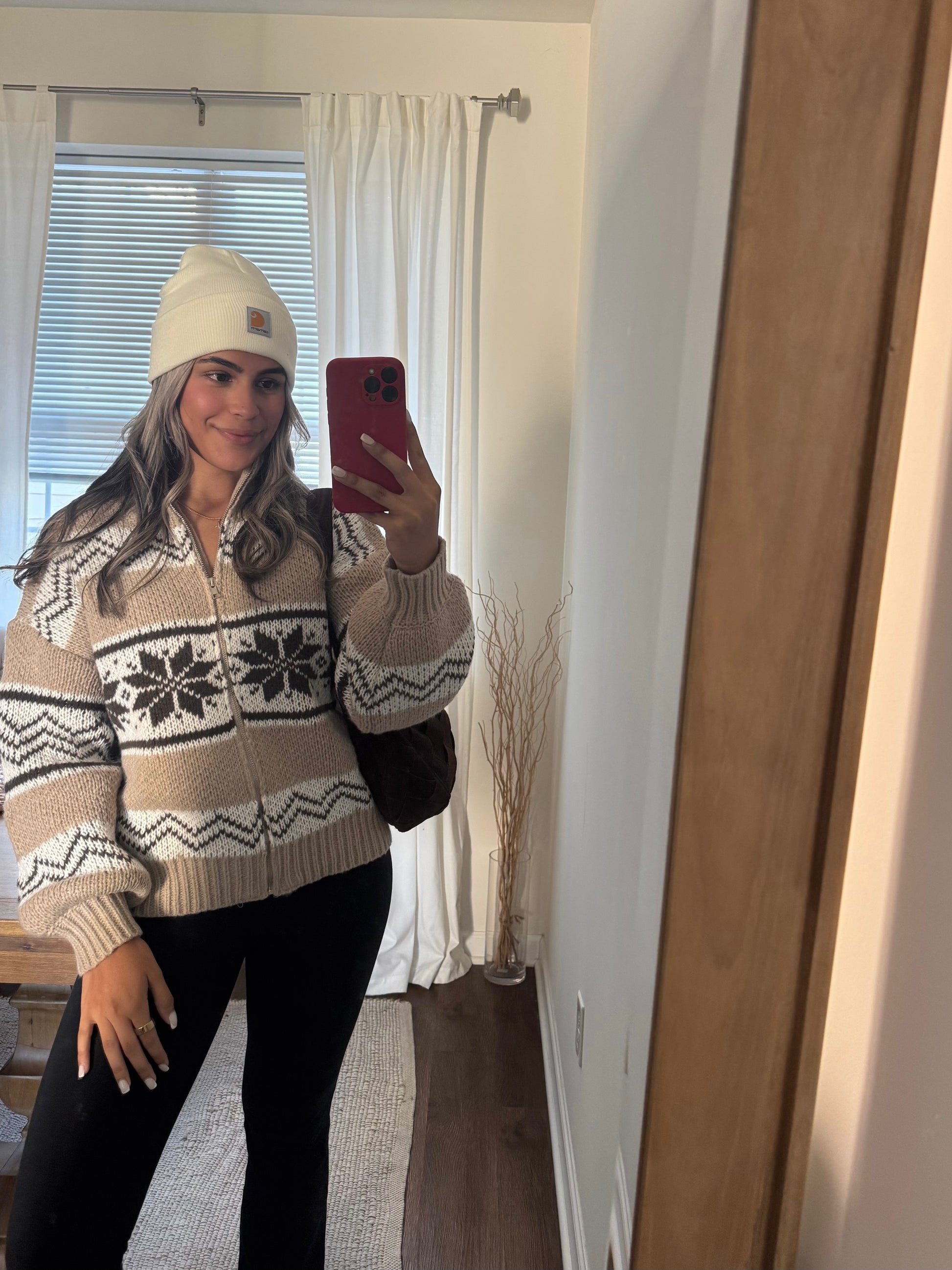 - The Tasha is a very thick, zipped sweater including the classic nordic pattern.